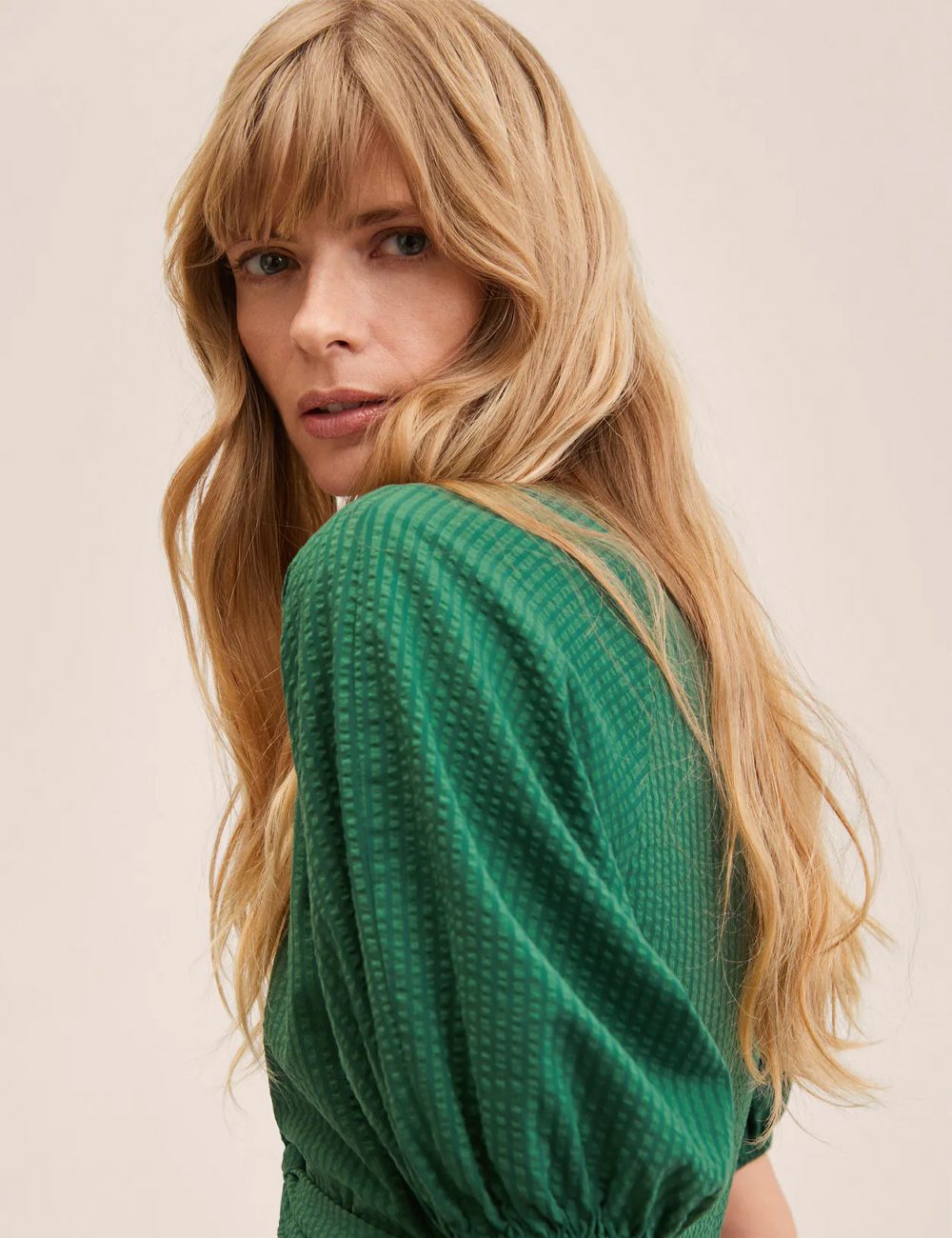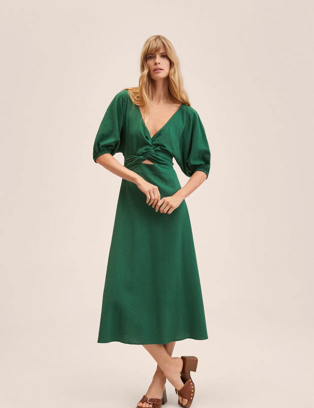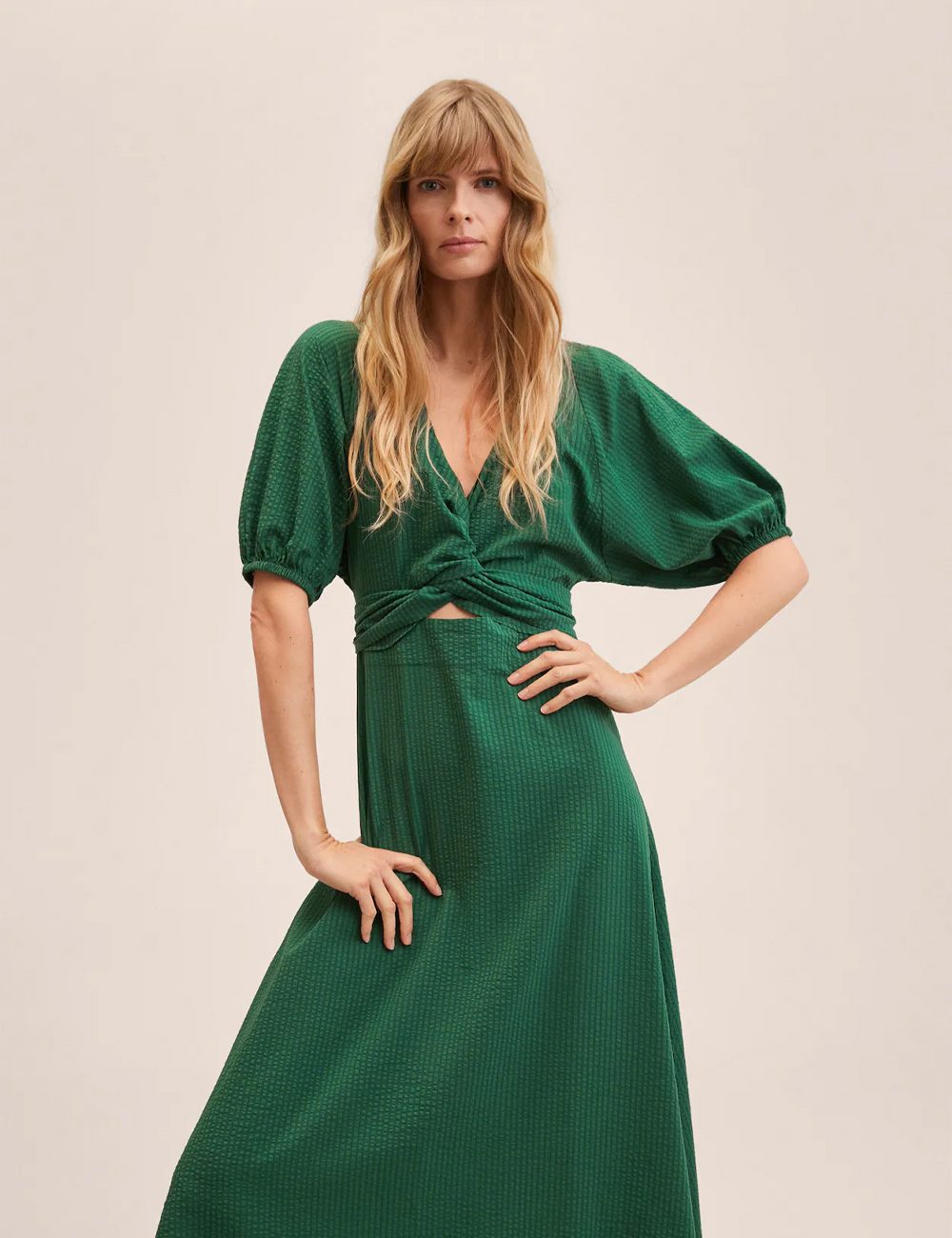 Cotton-blend fabric. Textured fabric. Long design. Evasé design.